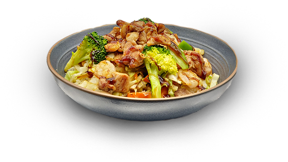 Stir-fried mixed vegetables and udon noodles served with a choice of your protein and sauces.